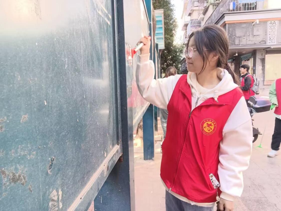垃圾分类是生态文明建设的关键环节。走进社区,你会看到身着鲜艳志愿服的同学们活跃在各个场景。有的同学手持清洁工具,仔细地清理着楼道内的小广告和灰尘,让原本布满斑驳的墙壁焕然一新。他们不放过任何一个角落,让社区居民的生活环境更加整洁舒适。