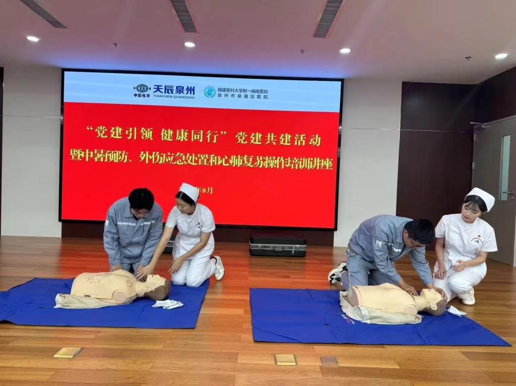 在中化学天辰(泉州)新材料有限公司的职工也参与了我们的活动,我们为其开展了医学知识宣教与CPR的演示与教学活动。通过这些活动,职工们不仅学到了宝贵的急救知识,也增强了应对紧急情况的能力。