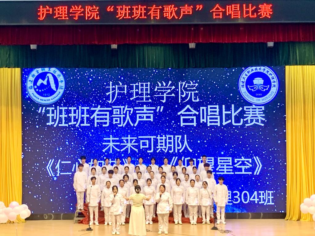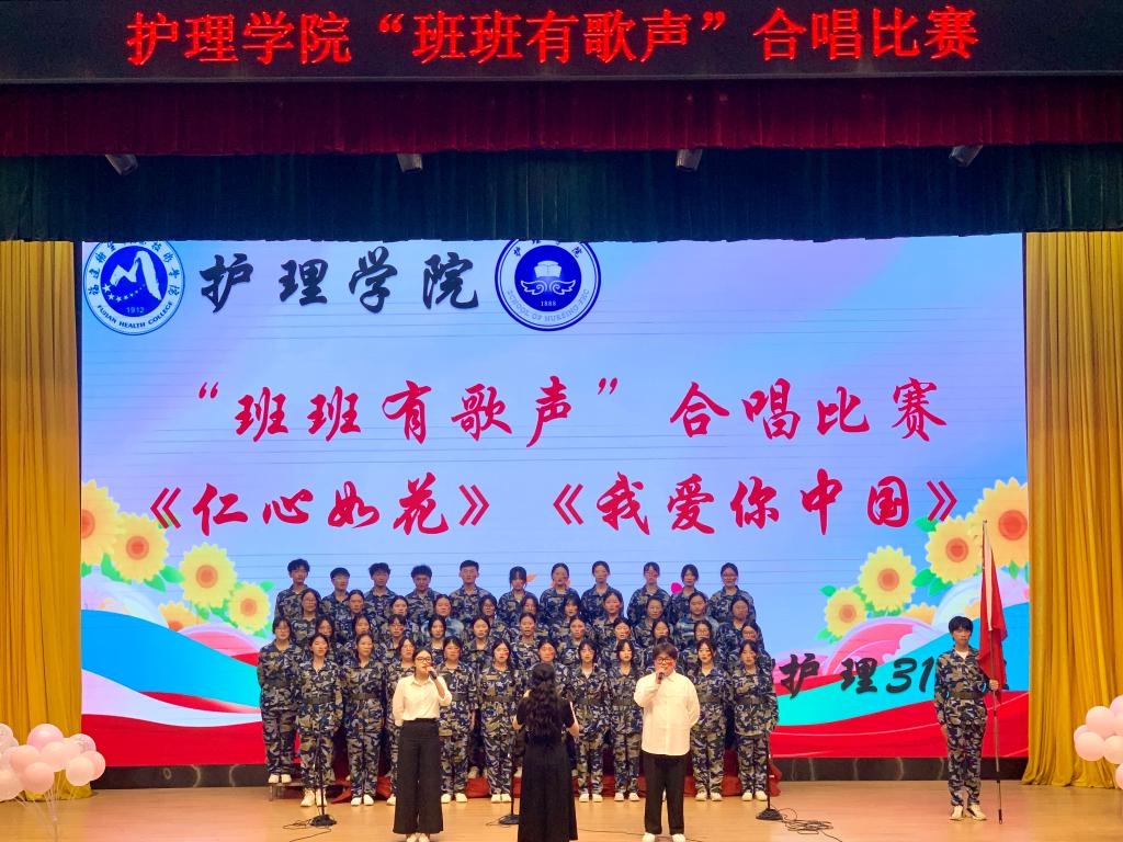 以嘹亮歌声唱出青春真情怀,以满腔激情奏响爱国最强音,护理学院以班级为单位,共计24个班参加此次合唱比赛,各班级按抽签顺序依次上场。分别表演校歌《仁心如花》以及一首朝气红星歌曲,让我们一起回顾一下大家出色的演出吧!