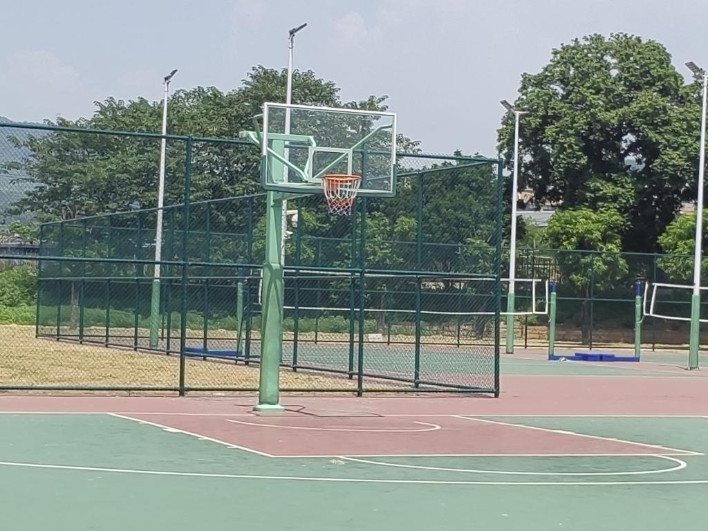 校园篮球场共两个篮球场,室内室外各一个3。为爱篮球的闽卫院er们,遮风避雨球场旁边设有板凳,观众席里欢呼不断运球、传球、上篮动作一气呵成,尽显青春风彩。