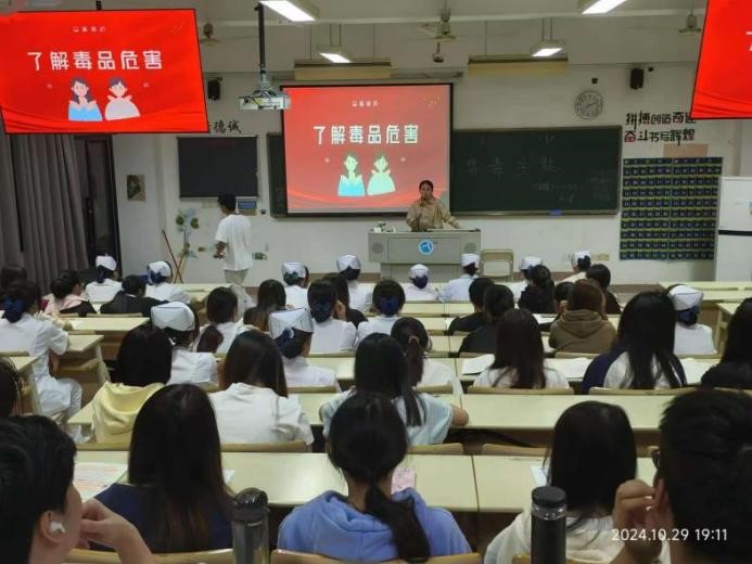 为深入学习贯彻习近平总书记关于禁毒工作的重要指示精神,持续巩固学校毒品预防教育成果,进一步增强在校学生识毒防毒拒毒意识和能力,确保每位同学都能深刻认识到毒品的严重危害,增强自我防范意识。因此,护理学院开展学生毒品预防教育“五个一”之禁毒主题班会。