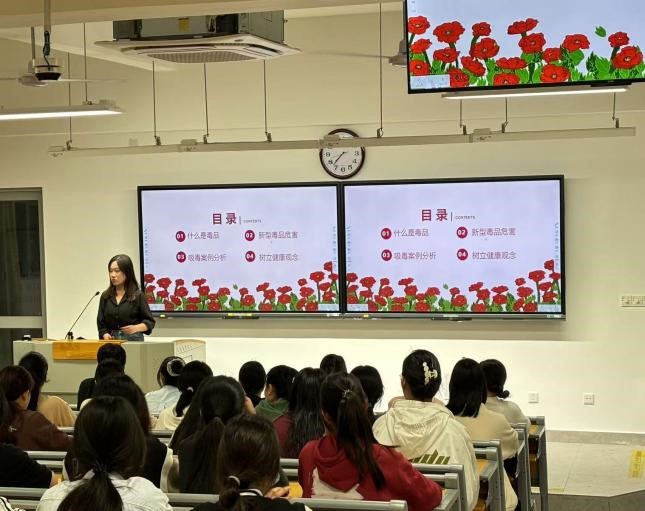 在班会上,辅导员老师首先向同学们通报了近期社会上发生的一系列涉毒案件,包括青少年因好奇尝试毒品而深陷泥潭,依托咪酯、右美沙芬等麻精药品以及“笑气”等非列管成瘾性物质的滥用问题等。通过这些真实案例的分享,同学们深刻认识到毒品的严重危害。