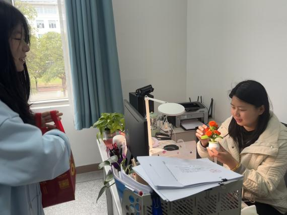 3月7日上午,学院学生代表们捧着亲手制作的礼物,带着全体学生的深情厚意,向辛勤耕耘的老师致以最崇高的敬意。这些创意满满的扭扭棒花束,虽不及真花那般娇艳,却蕴含着同学们无尽的感激与祝福。每一盆小花,都是对老师无私奉献的最好回馈。当老师们接过这特别的礼物时,脸上洋溢出的笑容,比任何语言都更能触动我们的心弦。