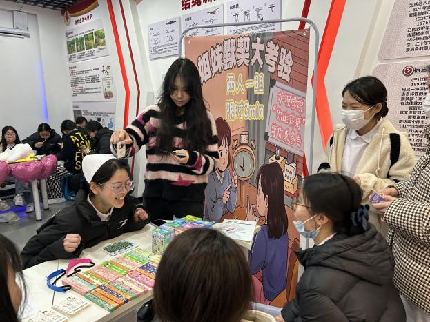 孔雀东南飞:“孔雀东南飞!孔雀东南飞…”指令声此起彼伏,反应慢半拍的“迷糊选手”逗得全场大笑,最终50+位同学赢得礼品!