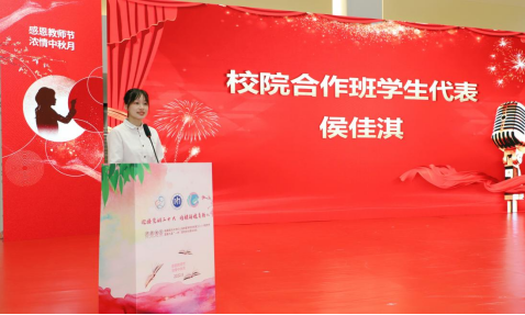侯佳淇作为学生代表发言,表达了对学校和医院的感谢,对新的学习生活充满美好的期待。她表示全体同学将会志存高远,脚踏实地,做到遵守纪律、严于律己、勤奋进取、团结合作,向优秀的前辈们学习,将来成为一名优秀的白衣天使。