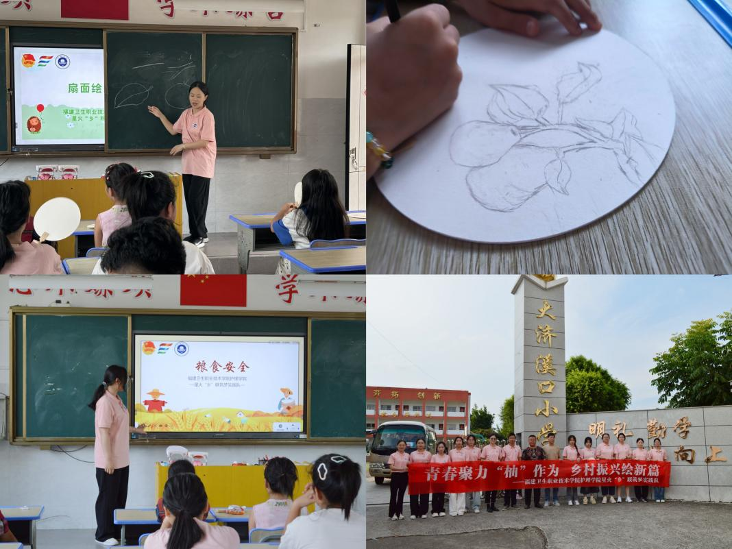 仙游县大济溪口小学,队员们走进课堂,以生动故事与趣味游戏为桥梁,为孩子们普及粮食安全、传授卫生常识、推广普通话扇面绘柚等艺术创作激发了孩子们的艺术创造力,画笔下的文旦柚饱含着对家乡特色产业的热爱。这份“幼”苗守护,将知识的薪火“连”接传递,在童稚心田播撒下爱国爱乡、勤学奋进的种子。