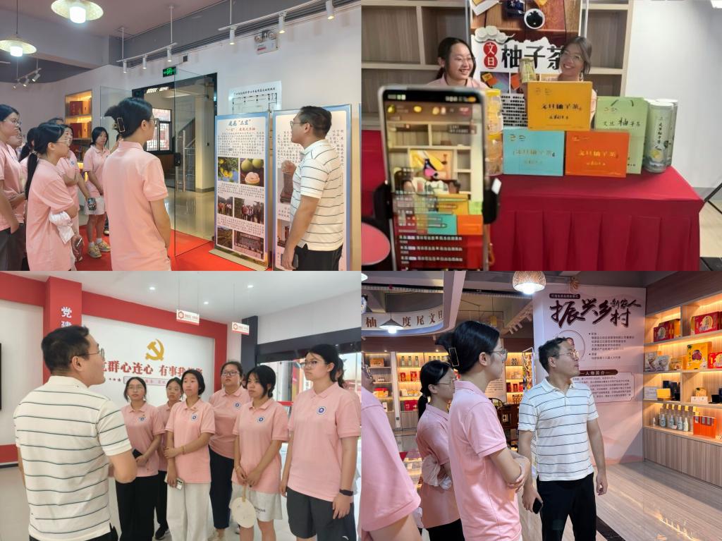 在柚相邻二楼产业能级提升中心,同时也是文旦柚助农直播基地,队员们积极参与助农直播,详细介绍文旦柚的营养价值、特色口感以及柚子茶、柚子酱、柚子果脯等衍生产品的制作工艺和风味。依托合作基地,他们积极建言献策,推动加强品牌建设,打造具有地域特色和市场竞争力的文旦柚品牌,促进产业向标准化、规模化、品牌化发展,让小小文旦柚真正“联”通千家万户,成为撬动乡村振兴、凝聚最美乡韵的“黄金果”。