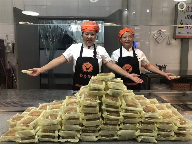 此外,三个食堂也不忘给学生送福利,中秋节向每位前来用餐的学生分发月饼,食堂处处洋溢着节日喜庆的氛围。