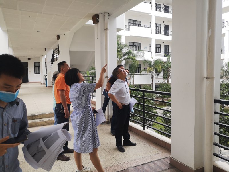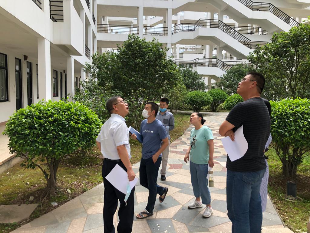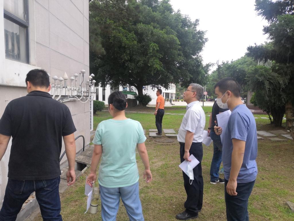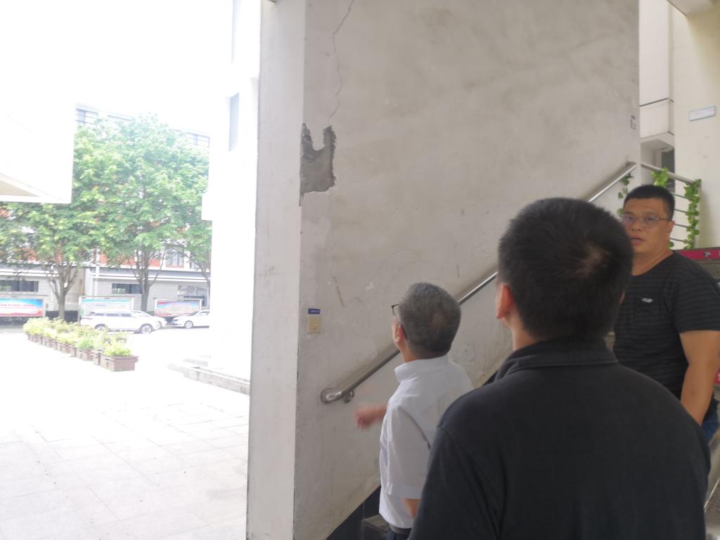 5月29日,陈贞健副院长带领后勤管理处人员对各部门报告的疑似房屋结构安全隐患进行现场复查。