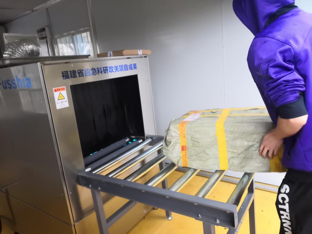 该消杀工作站配备的紫外光催化复合消杀设备采用消杀能力最强的254nm波长紫外线光源,具有快速高效无污染的消杀特点,每小时可消毒2000件货物。所有进校的快递在校门外中转站进行消毒液喷雾消毒后,再转运至紫外光催化复合消杀工作站进行二次消毒。冷链食品通过紫外光催化复合消杀后再入库储藏。该工作站的启用,为校园防疫消杀增添了新利器。