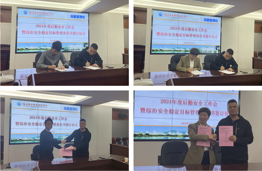 会上,后勤管理处处长艾松军总结2023年后勤安全工作情况,通报当前食堂经营、修缮施工、校舍管理等安全生产形势,动员部署2024年后勤安全工作任务。他要求,第三方服务单位要根据自身实际将综治安全工作责任细化分解到班组和员工个人,做到层层有压力、人人有指标,形成横向到边、纵向到底、责任到人的安全管理体系。随后,他代表学校分别与第三方服务单位签订安全责任书。