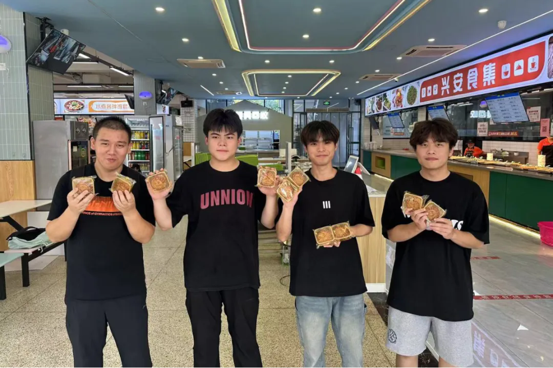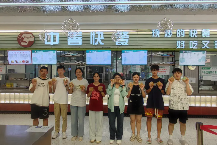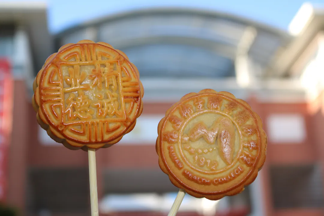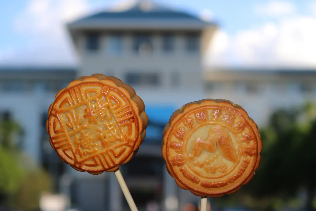 今年,学校组织各食堂推出印刻有校徽与校训LOGO的豆沙和凤梨口味月饼,以盲盒形式向8300多名在校FHCers免费派送。每款定制月饼都是颜值与口味并存,不仅传递着学校对同学们的关心祝福,也承载着学校的文化元素,这是独属于闽卫人的中秋福利。