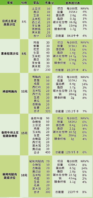有富含膳食纤维的西兰花、酸甜可口的圣女果、营养满满的鸡蛋,搭配荞麦面或鲜嫩鸡排、猪排、鸡胸肉。每款套餐卡路里精心把控,最低至241卡。