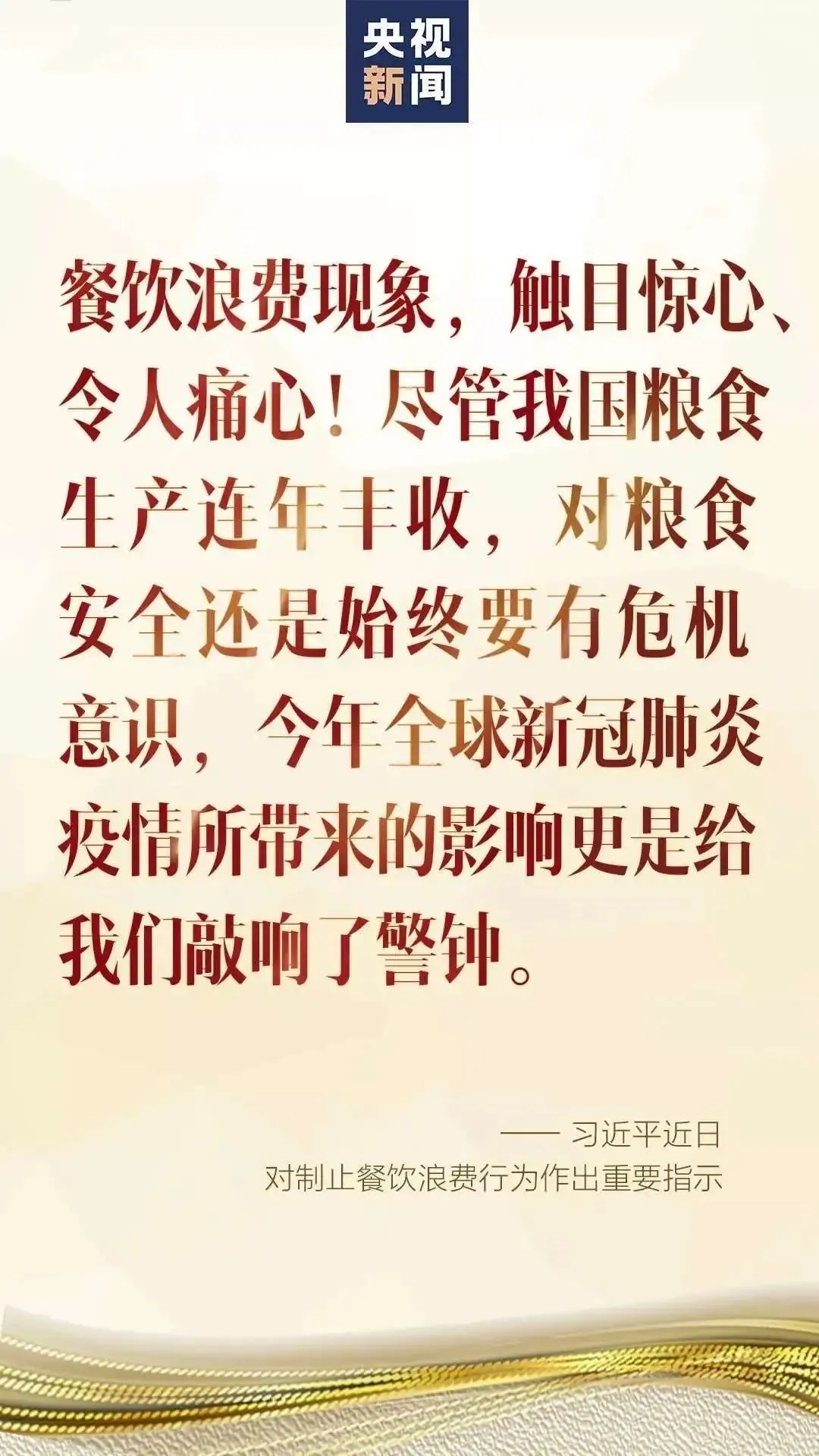 二、争做爱粮节粮的践行者。在日常生活中,无论是在外就餐还是家中吃饭,让适量点餐、不剩菜、不剩饭成为一种自觉遵守的习惯,进一步弘扬中华民族勤俭节约的美德,树立文明、健康、科学、节俭的新风尚。