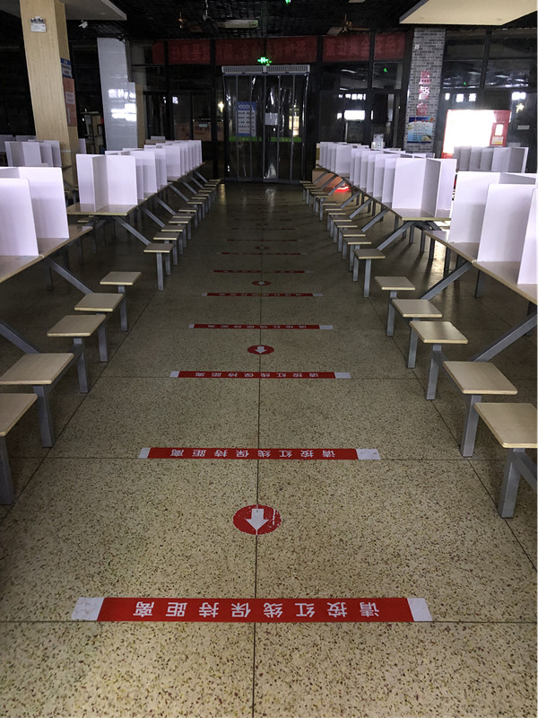 面对当前疫情多点散发的严峻态势,后勤管理处、招标采购中心党支部有效强化校园疫情防控,落实所有进出食堂的人员佩戴口罩、保持1米安全距离,定期消杀食堂环境等防控要求,做实、做深、做细食堂防疫举措。3月12日,后勤管理处、招标采购中心党支部快速响应疫情防控要求,组织人员利用周末时间加急在校内三个食堂350多张餐桌上安装了PVC隔板,将每张餐桌分割成四个独立“小空间”,阻断堂食期间飞沫传播,为师生安全、健康用餐增添一道安全屏障,为疫情防控做出积极的努力。