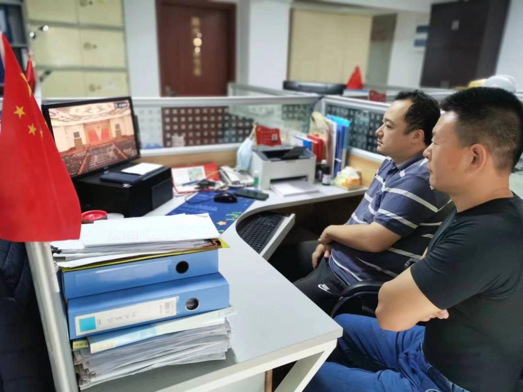 庆祝大会结束后,观看党员同志分别谈谈习近平总书记重要讲话精神,立足自身岗位,贡献绵薄力量,以优异的工作成绩迎接党的二十大胜利召开。