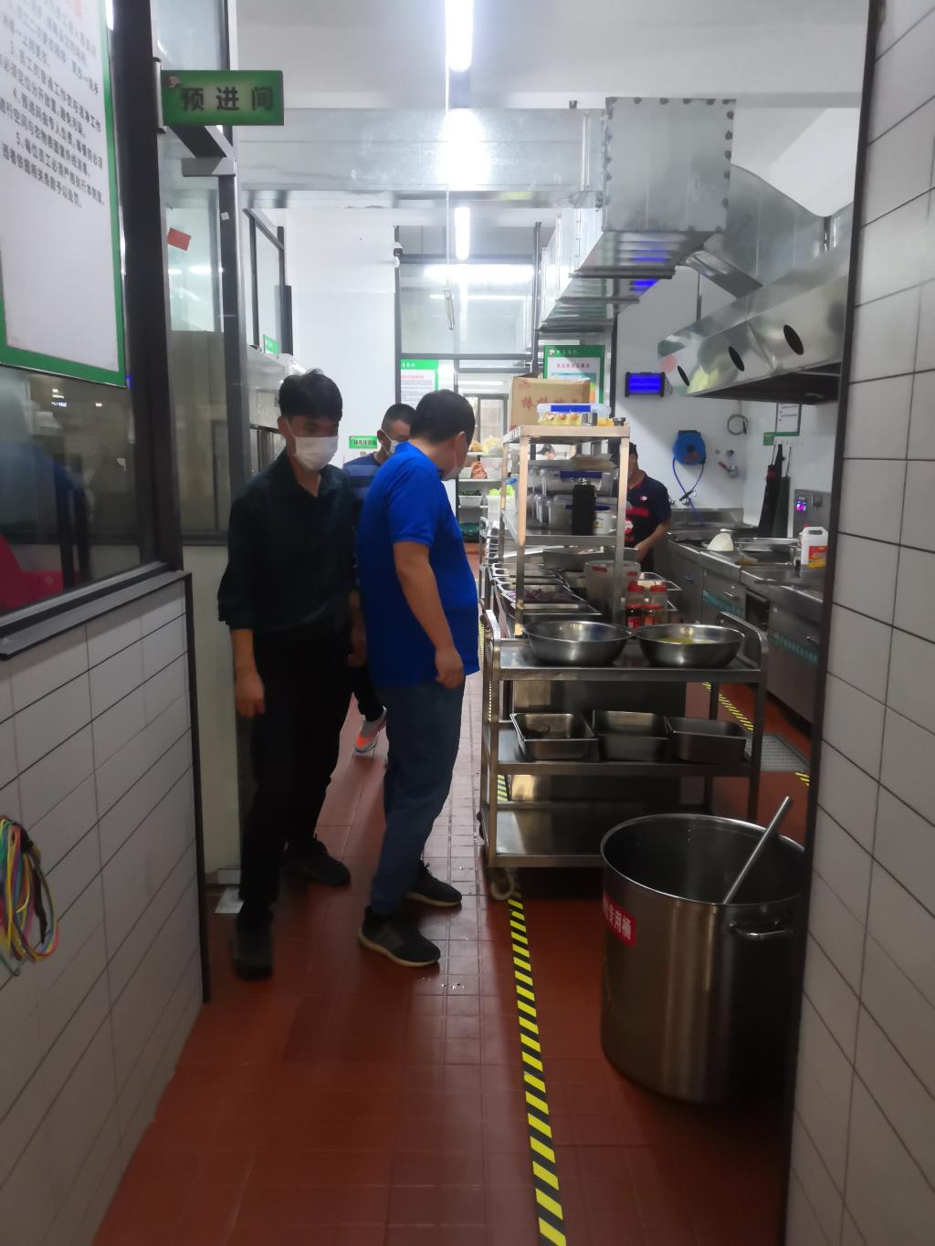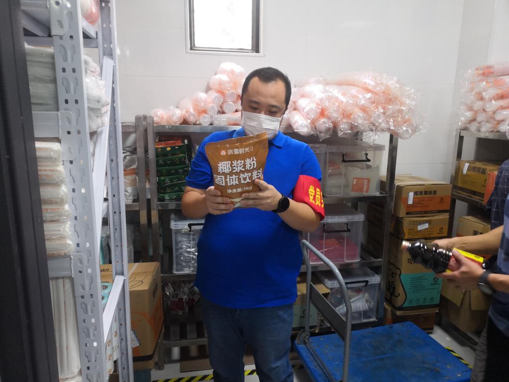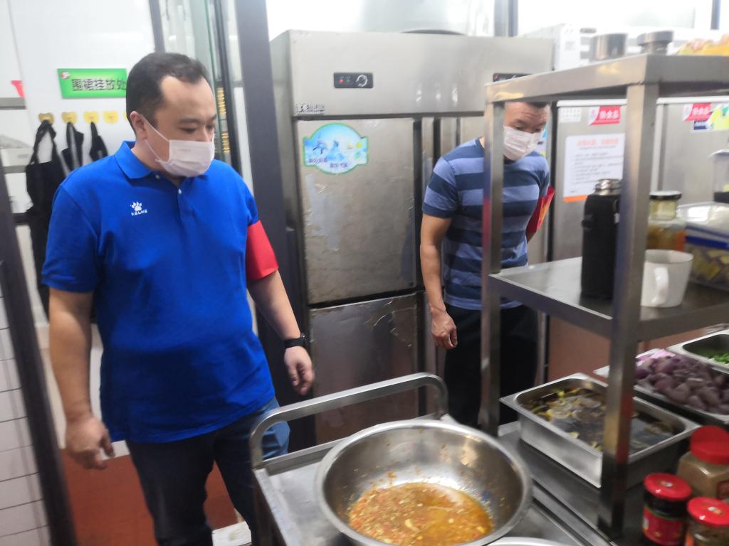 支部党员突击队深入三个食堂一线,对食材采购与索票索证台账、食品留样、从业人员健康证、食材储藏,食品加工环节与加工环境、售卖与就餐环境、人员佩戴口罩、环境消杀与记录、餐厨具洗涤消毒及记录、厨余垃圾回收、消毒液配备、食品从业人员健康码、行程码、核酸检测报告等涉及生产经营与疫情防控方面的工作进行详细检查,并就薄弱环节提出整改意见。