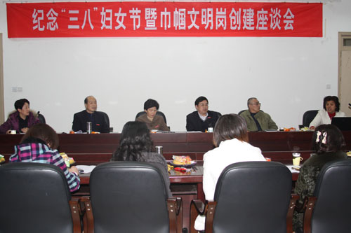 为庆祝“三八”国际劳动妇女节101周年,我院女教职工代表于2011年3月3日下午欢聚一堂,参加纪念“三八”妇女节暨巾帼文明岗创建座谈会。学院党委书记严肃、院长林春明、党委副书记陈雄、党委工作部副部长董榕、工会副主席杭玉山、妇委会委员、各女工小组长和女教职工代表共25人一起参加了会议。座谈会由院妇委会主任马少宁主持。