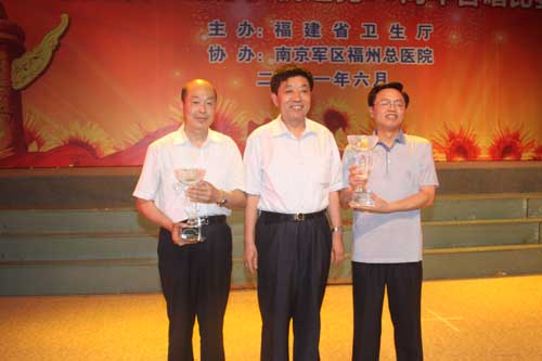 由省卫生厅主办的庆祝中国共产党成立90周年“健康卫士颂党恩 服务民生促发展”合唱比赛,6月14日下午在福州总院礼堂隆重举行,共有省属医疗卫生单位13个团队参加了比赛,我院领导和教职工60人组成的合唱团,带着《在灿烂阳光下》、《七律·人民解放军占领南京》两首曲目、带着饱满的热情和良好的精神风貌参加了比赛,荣获二等奖。
