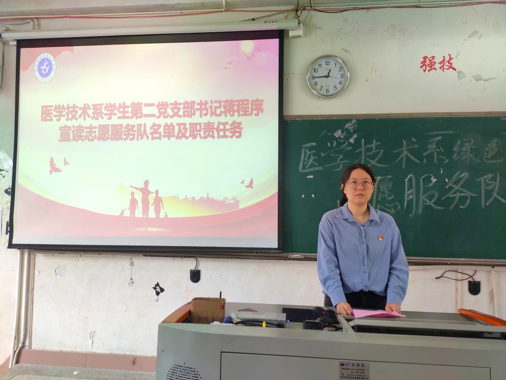 为大力弘扬“奉献、友爱、互助、进步”的志愿服务精神,积极探索“党建+团建+志愿服务”新模式,日前,医学技术系学生第二党支部联合医学技术系团总支,在医技一阶教室举行绿色环保行动志愿服务队成立仪式。医学技术系党总支副书记林燕,学生第二党支部、团总支相关负责人以及第二党支部全体党员老师出席仪式。本次仪式由20眼视光301班赖俐君同学主持。