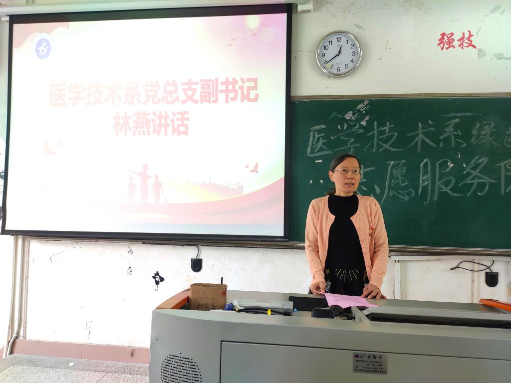 成立仪式上,林燕向加入医学技术系绿色环保行动志愿服务队的同学们致以诚挚的祝贺和美好的祝愿。她表示,作为新一代青年,应担起重任,向各地环保战线上一批又一批的优秀人物学习,为"保护环境安全,建设幸福家园”努力奔走,用自己的实际行动建设美好家园。