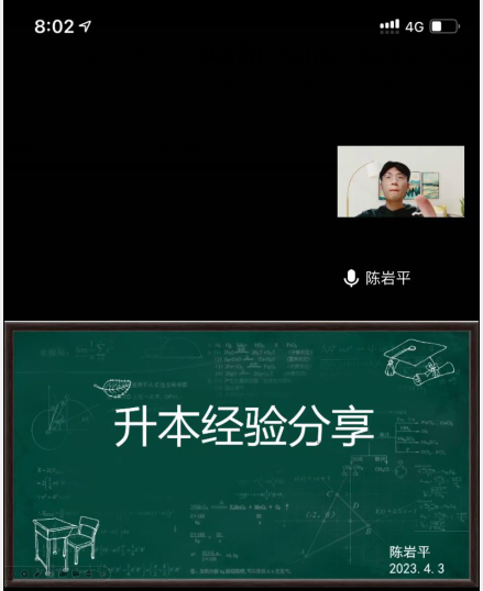 校友陈岩平围绕专升本备考内容的复习分解、各个阶段的复习方式、心态调整等进行了详细讲解,并鼓励学弟学妹们坚定目标、全力以赴。