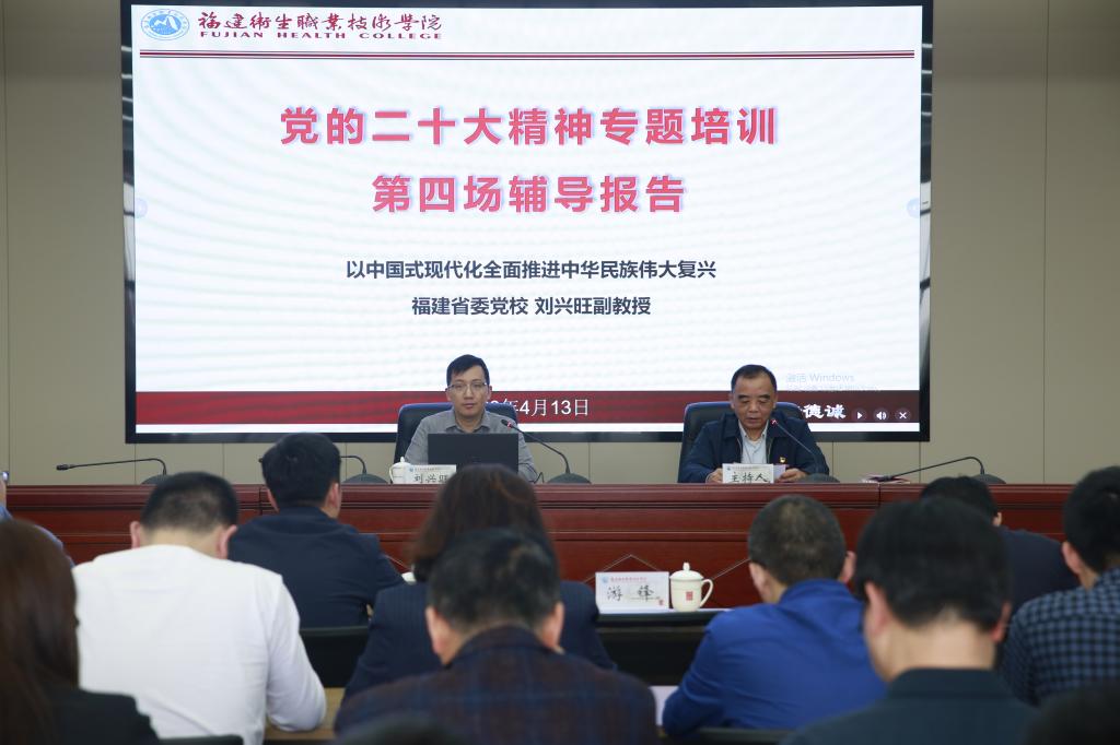 为深入学习宣传贯彻党的二十大精神,4月13日下午,开云举行党的二十大精神专题培训第四次集中学习,邀请福建省委党校刘兴旺副教授作辅导报告。校领导、中层干部、专职组织员和师生党支部书记等共80余人参加培训。报告会由纪委书记游锋主持。