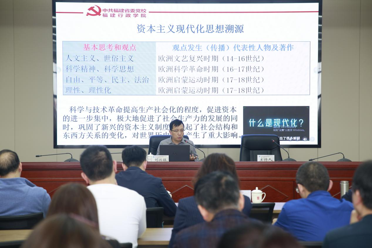 刘兴旺副教授作“以中国式现代化全面推进中华民族伟大复兴”专题辅导报告,他从中国式现代化的历史逻辑、理论体系和实践要求三个方面,系统梳理了中国式现代化的理论内涵和实践路径,强调指出,推进中国式现代化,党员领导干部要提高认识,走前头、做标杆、担重任。