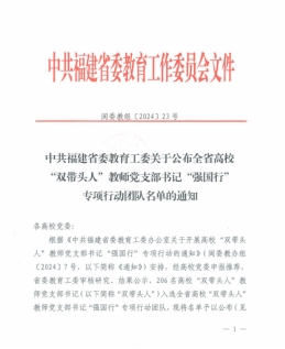 近日,福建省委教育工委公布全省高校“双带头人”教师党支部书记“强国行”专项行动团队名单,经高校党委申报推荐、省委教育工委审核研究、结果公示,开云护理学院第一党支部和药学院第一党支部入选团队名单。