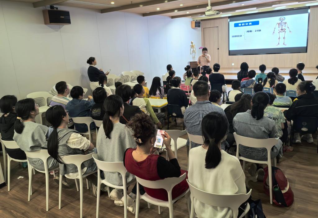 支部党员教师围绕“人体探秘”宣讲主题,带着到场的近三十名社区儿童学习骨骼知识。党员教师用通俗易懂的语言结合模型展示,穿插趣味提问与生动互动,让抽象的医学知识变得直观易懂,使孩子们快速了解骨骼知识,在孩子们心中播下了探索人体奥秘的种子。