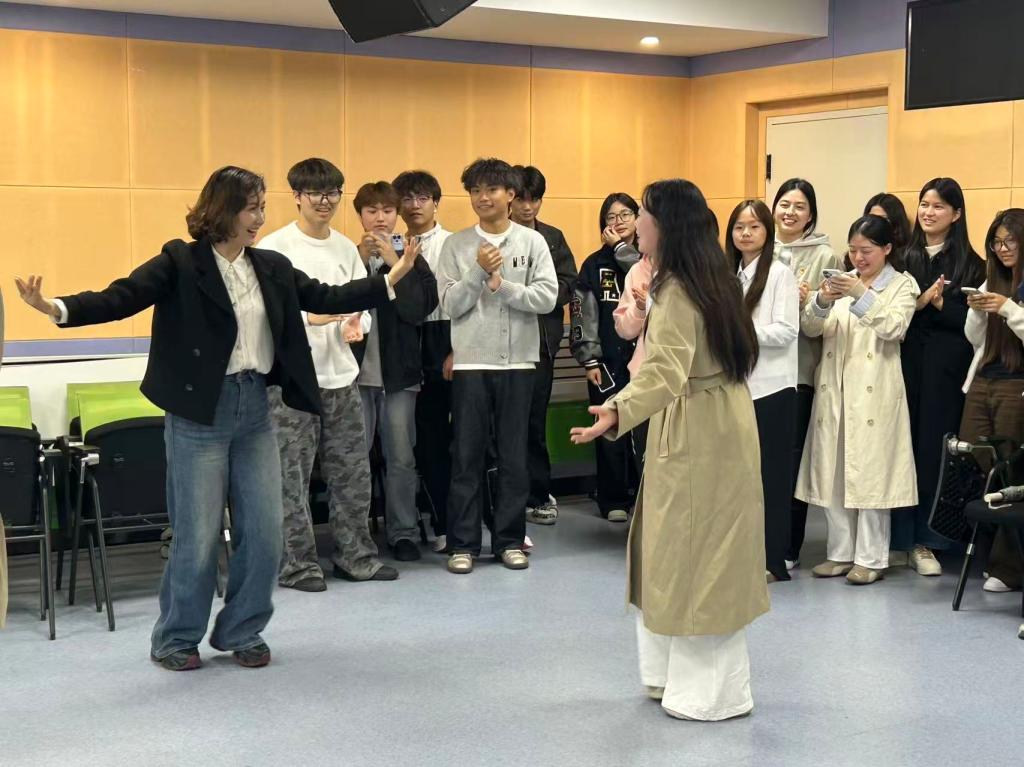 就业交流环节结束后,一场充满民族风情的文艺互动活动温情启幕。福籽同心工作室成员带来了独具特色的民族歌舞表演,充分展现了民族文化的独特魅力与多彩底蕴。学生代表受邀参与互动,大家沉浸式体验多民族文化交融之美,使“中华民族一家亲,同心共筑中国梦”的理念更加深入人心,有效增进了情感认同与团结凝聚力。