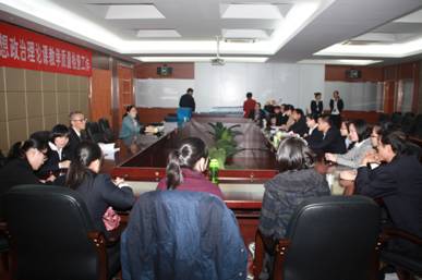 2012年11月22日下午,由福建农林大学马克思主义学院院长叶飞霞教授任组长,福建工程学院思政部主任杨伟才教授、福建师范大学马克思主义学院院长助理杨林香副教授、省委教育工委宣传部欧阳迪莎主任科员任组员的检查组一行4人莅临我院,对我院思想政治理论课教学质量进行检查指导。学院党委陈雄副书记、廖伟坚副院长、黄开良副院长、魏立娜副院长,党委工作部、教务处、学生工作处、人事处、科研处、财务处、团委、各系部党总支等相关职能部门负责人,思想政治理论课教研部党政领导和全体思想政治理论课教师参加了汇报会和专家反馈会。会议由廖伟坚副院长主持。
