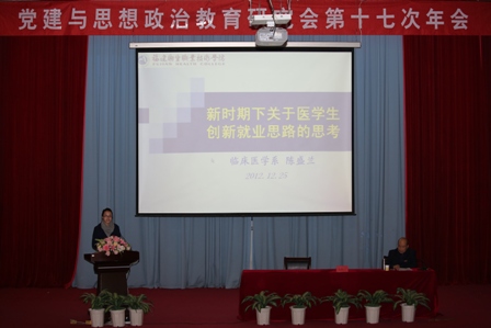 2012年12月25日下午,我院党建和思想政治教育研究会第十七次年会在学术报告厅召开。这次会议的主题是:努力做好党建与思想政治教育工作,为全面建设示范性高职院校做贡献。会议的主要内容是:回顾总结2011学年我院党建和思想政治工作的做法和经验,进一步探索新形势下党建和思想政治教育的有效途径,提出当前和今后一个时期我院党建和思政工作的要求和重点,为全面建设示范性高职院校做贡献,为推进学院科学发展贡献力量。全院教职员工300余人参加了会议,会议由陈雄副书记主持。