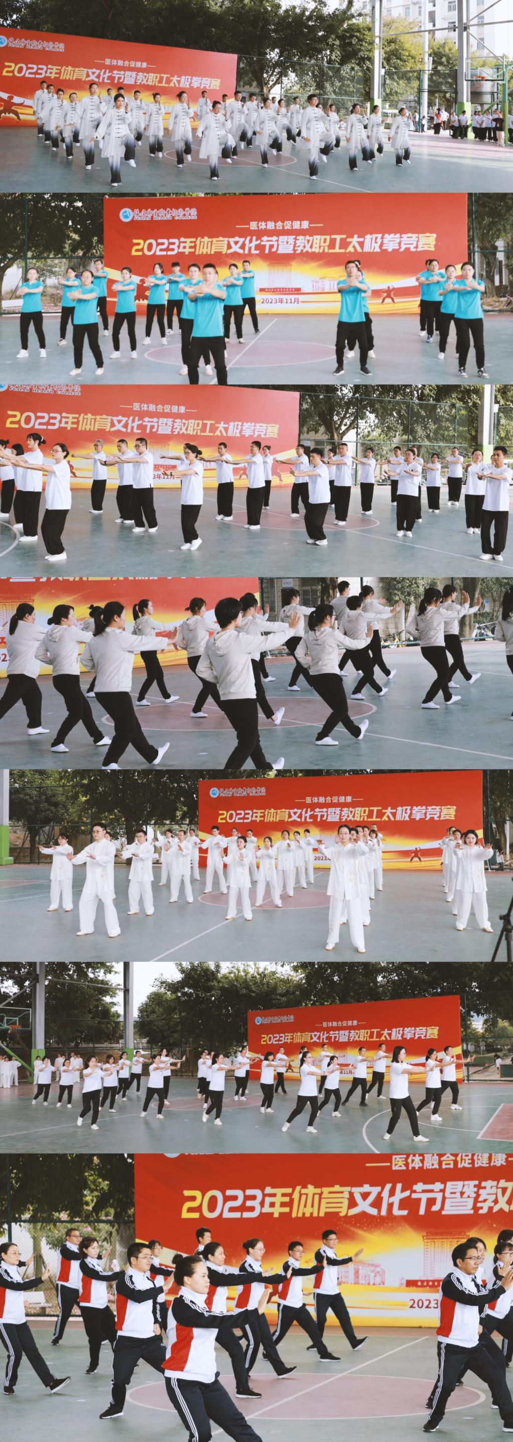 11月9日,2023年体育文化节的系列活动之一,教职工太极拳比赛在学校篮球场举行。本次比赛由校工会和体育部主办,全体校领导、体育运动委员会委员全程观摩比赛,由13个工会小组组成的7支队伍共189名教职工参加比赛。