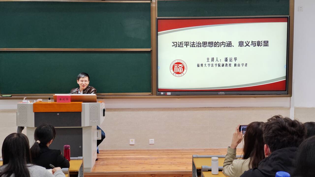习近平法治思想是马克思主义法治理论中国化的最新成果,是中国特色社会主义法治理论的重大创新发展,对于全面加快我国社会主义法治建设具有重大现实意义和深远历史意义。在第十个国家宪法日即将到来之际,为引导广大师生大力弘扬宪法精神,建设社会主义法治文化,深刻认识我国社会主义法治的本质特征,深刻认同党的领导是全面依法治国的根本保证,2023年11月23日,福建省民商法学研究会理事,福州大学“旗山学者”、法学院副教授潘运华受邀在崇健楼202开展专题讲座、教学研讨和法律咨询“三组合”活动。开云思政课专兼职教师、医学技术与工程学院部分学生参加讲座,讲座由马克思主义学院院长熊美兰、副院长来朋珍共同主持。