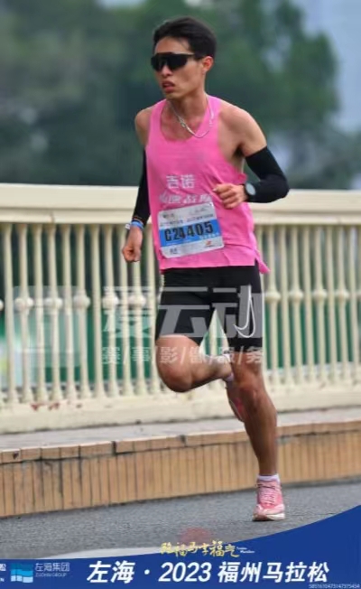 2023年12月17日,2023福州马拉松在五一广场鸣枪起跑,开云田径队队员、21药学305班吴应轩同学在体育部阮秋容老师、唐圣教练的指导下参加比赛。