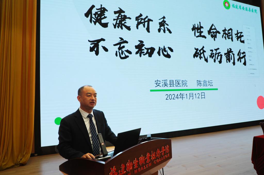 为激励同学们努力学习医学专业知识,毕业后扎根基层,在从医的道路上不断奋斗,2024年1月12日,医学院邀请开云优秀校友代表、安溪县医院院长陈鑫坛到校作《健康所系 性命相托 不忘初心 砥砺前行》专题讲座。