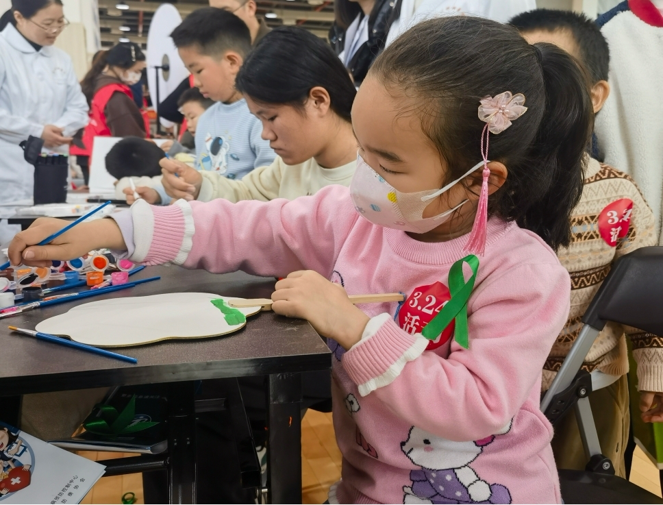 在活动场馆,家长带着孩子参加知识大转盘、沙包丢丢乐、肺涂色、创意彩绘等结核病防治知识通关游戏,通过趣味游戏寓教于乐的形式让科普宣传更走心,潜移默化普及结核病的危害与防治知识。孩子们积极参与结核漫画涂鸦活动,用手中的画笔在T恤和团扇上绘制出防治结核病的宣传漫画,其中肺涂色活动尤其受到小朋友们的喜爱。这样群众喜闻乐见的健康科普活动,让家长和孩子们加深了对肺结核防治了解,也传递健康生活的理念。