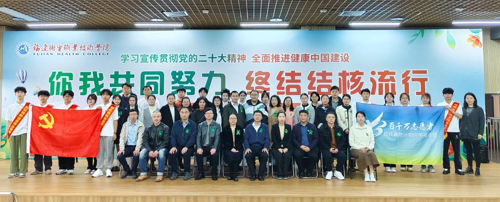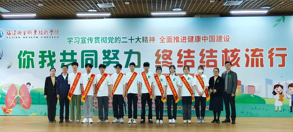 活动仪式上,公共卫生与健康管理学院院长庄海林在致辞中呼吁广大志愿者积极参与到结核病防控宣传教育工作中,为实现终结结核病流行的目标贡献力量。福建省福州肺科医院副院长陈晓红、福建省防痨协会副秘书长黄智忠、护理学院党总支书记龚海蓉、健康学院党总支书记叶海为结核病防治宣传志愿者代表颁发绶带。