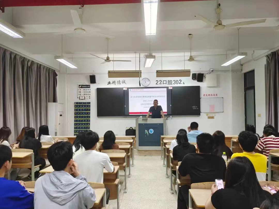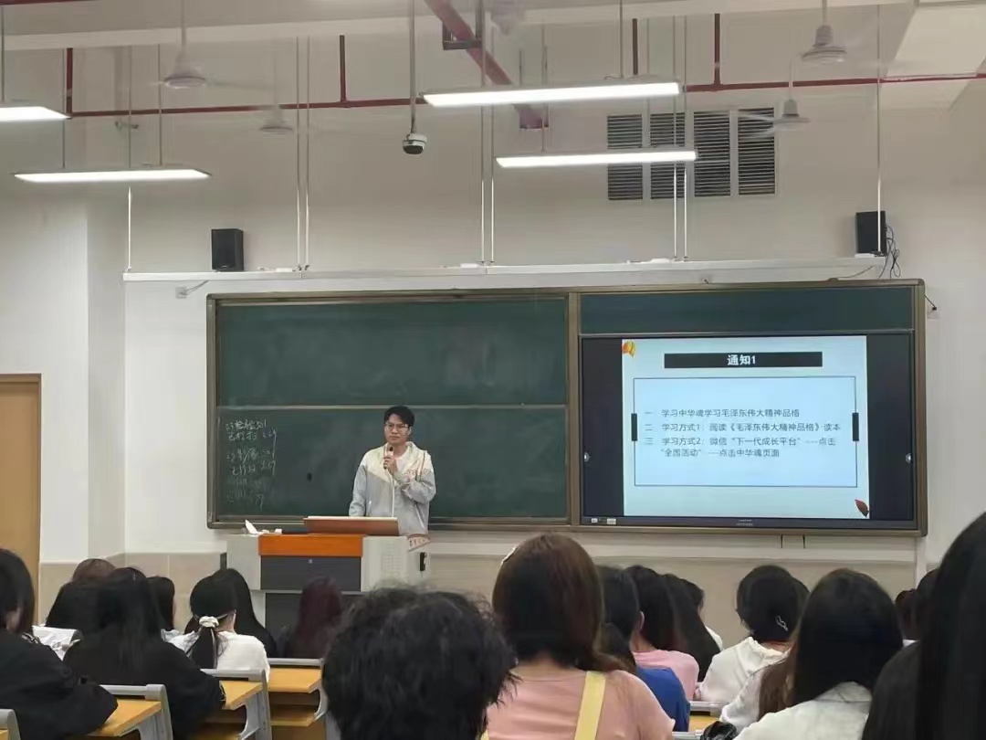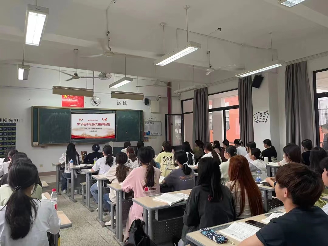 2024年3月,健康学院各年级辅导员借助主题班会向在校生讲述毛泽东同志领导中国革命的光辉历程和对伟大建党精神的开创性贡献,以及他的经典诗词等内容,深入阐述毛泽东同志的智慧,希望同学们勤奋学习,坚定理想信念,奋发有为,为卫生事业发展贡献青春力量。
