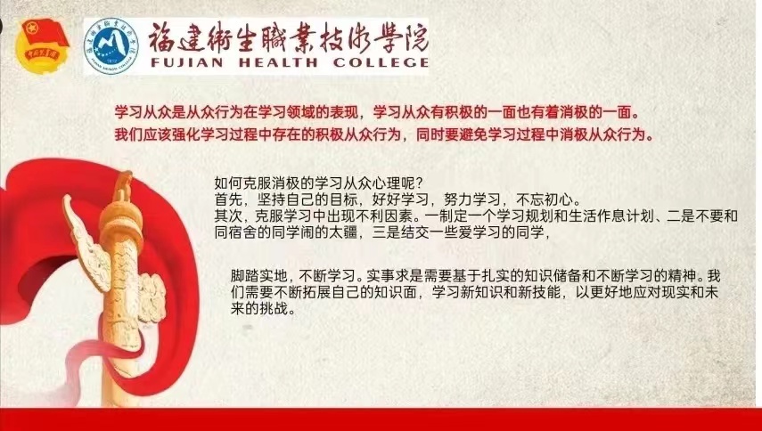 本学期以来,健康学院各班级宣传委员组织同学们通过介绍毛泽东同志的生平事迹,集中学习伟人的精神品格和历史贡献,激励同学们不断前行,做有理想、能吃苦、肯奋斗的新时代好青年。