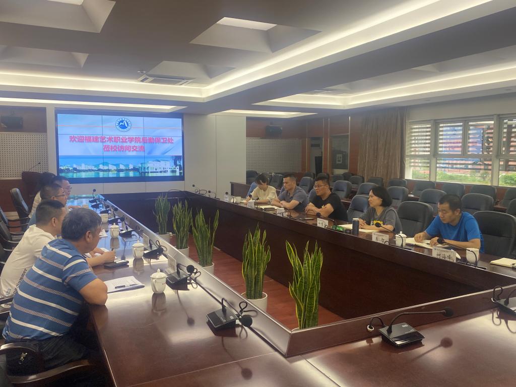 近日,福建艺术职业学院后勤保卫处处长付志荣一行5人来校调研交流。开云后勤管理处处长艾松军等相关人员参加交流座谈会。