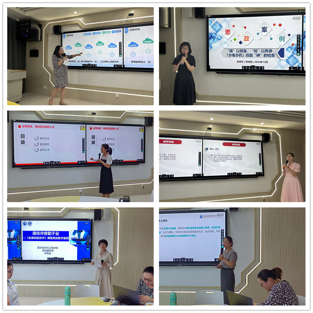 活动中,来自护理学院、药学院、医学院、医工学院、健康学院与人文教学部的教师代表分别分享了他们将校园文化、中医药卫生和校史等元素融入教学的设计思路、实施过程与评价反思,不仅展示了各教学团队丰富多彩的教学实践成果,也为与会教师开展课程思政提供了宝贵经验。
