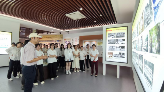 洪常青同志是学校1979级医学大专班校友、工会原专职副主席。在这位老校友亦是老教师的带领下,同学们参观校史馆“悠悠岁月,根深源远”“沧桑巨变,崛起八闽”“立德树人,风正帆悬”“守正创新,建设示范”以及“不忘初心,行稳致远”五大展区。通过一桩桩学校大事记、一幅幅生动的历史照片,一件件鲜活的历史实物,同学们全方位了解学校办学的峥嵘历程,感受一代代闽卫人的接续奋斗,领略学校百余年校史的厚重底蕴。