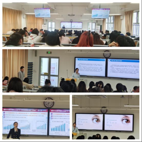 当天,福州爱尔眼科医院有限公司、福州普瑞眼科门诊有限公司两家单位受邀入校,围绕职场特点、职业定位、职业规划、企业文化等方面展开宣讲,助力学生就业。
