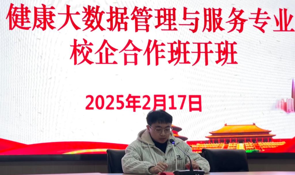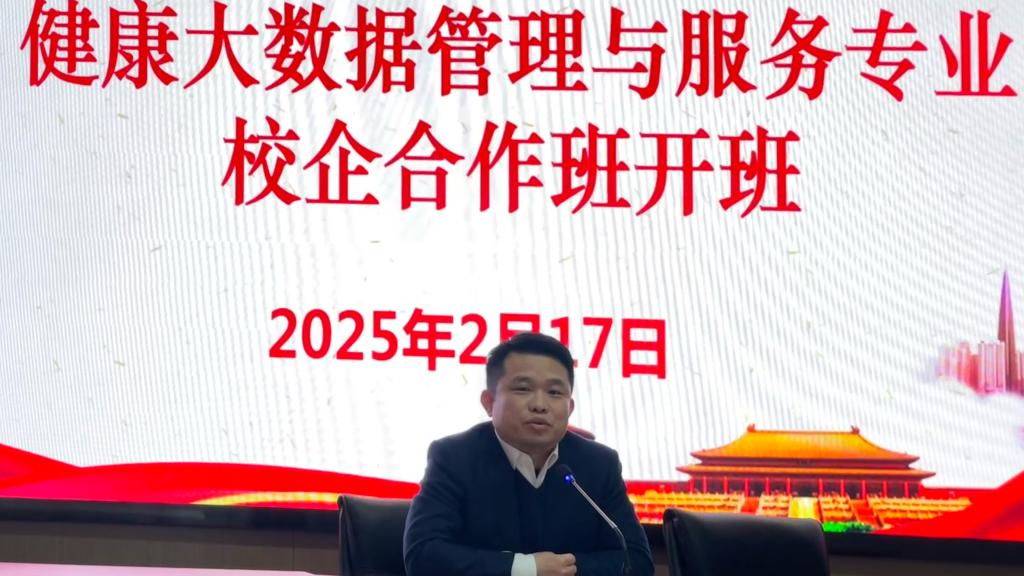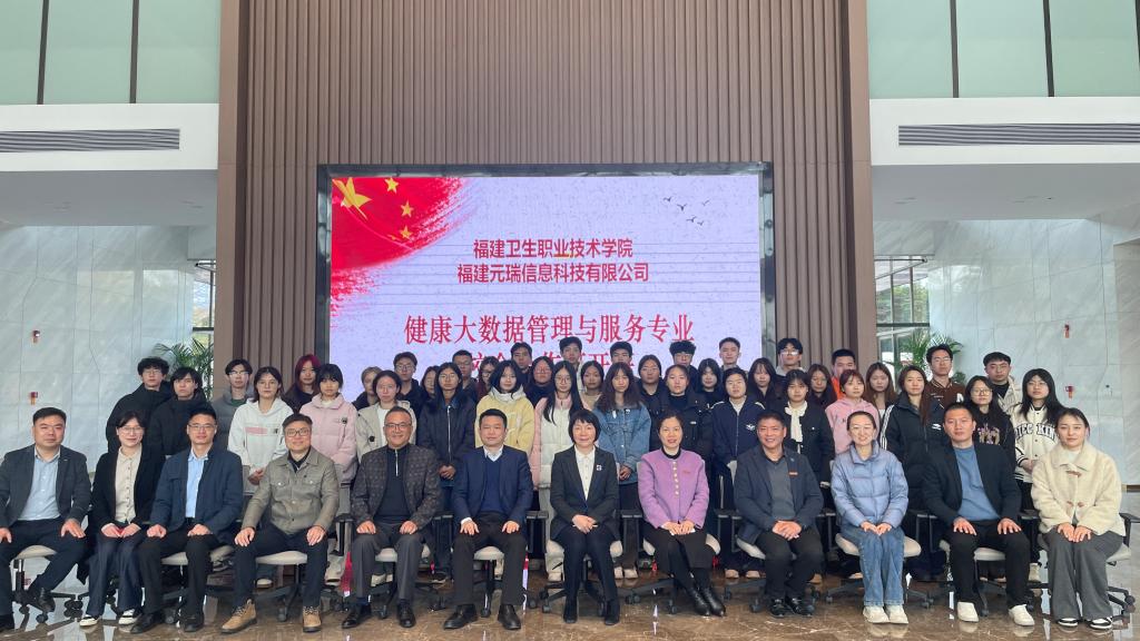 2月17日,开云第一届健康大数据管理与服务专业“校企合作班”开班仪式在国家东南健康医疗大数据中心隆重举行。福建元瑞信息科技有限公司总经理陈伟林、常务副总徐锦元、副总经理李昱、各部门负责人,学校党委副书记李美华,健康学院领导班子成员、健康大数据教研室专任教师、辅导员以及23级健康大数据管理与服务301班的学生共同参加开班仪式。