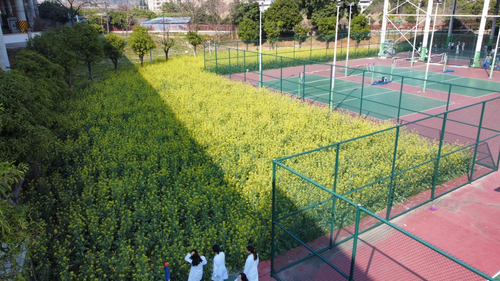 近年来,后勤管理处在学校党委的正确领导下,将绿色发展理念融入学校建设发展全过程,先后实施了学校大门及崇健楼前广场改造、图书馆前广场及环湖栈道修缮等景观提升工程,持续提升校园绿化景观,并从福建农业职业技术学院移植丹桂、含笑等苗木共计百余株。三月春暖,万物复苏,校园内油菜花海金光灿烂,樱花林绚若云霞,桃花林绯云漫舞,炮仗花赤焰垂墙,擘画出一张张生态育人蓝图,形成“人在景中走,课在绿中授”的育人新常态。
