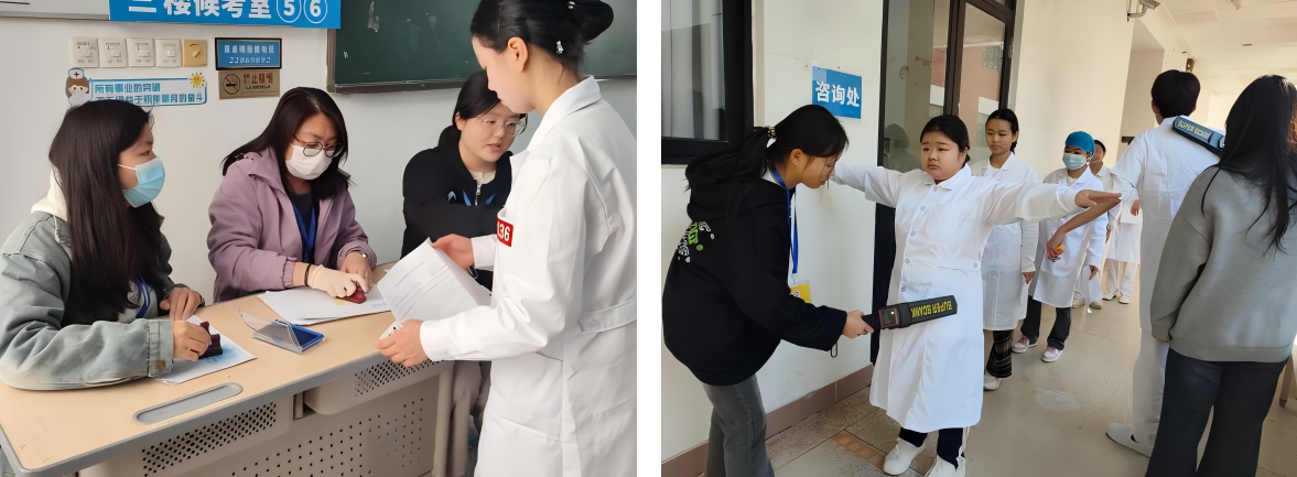 学校致力于为考生提供贴心服务,设立“一站式”服务专区,师生志愿者化身“引路员”“答疑员”,为考生定制“全流程导考图”,提供物品寄存、材料打印、应急医疗、自助饮水机等多项考生服务。针对残障考生,考点开通“绿色通道”,确保“应考尽考、温暖同行”。