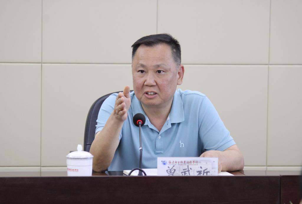 曾武祈要求,一要强化理论武装,锤炼党性修养。要把学习中央八项规定及实施细则精神与日常工作紧密结合起来,对照要求找差距、补短板,切实改进工作中的形式主义、官僚主义等问题,让党性修养在理论的滋养下愈发坚定纯粹。二要坚持自我革命,做到检身正己。以中央八项规定及实施细则为标尺,对学校的日常管理工作进行全面自查。在常查常省中,以高标准严要求规范自身言行,及时纠正偏差,始终保持清正廉洁的政治本色,实现自我净化、自我完善、自我革新、自我提高。三要践行为民务实,永葆初心使命。要时刻牢记为师生服务的宗旨,将为民务实的理念贯穿于各项工作之中。要做好师生的国家安全教育,做好校园安全稳定工作。以安全为基石,不断提升学校的管理水平与服务能力,高质量完成“十四五”规划的各项目标任务,科学谋划“新双高”和“十五五”规划。