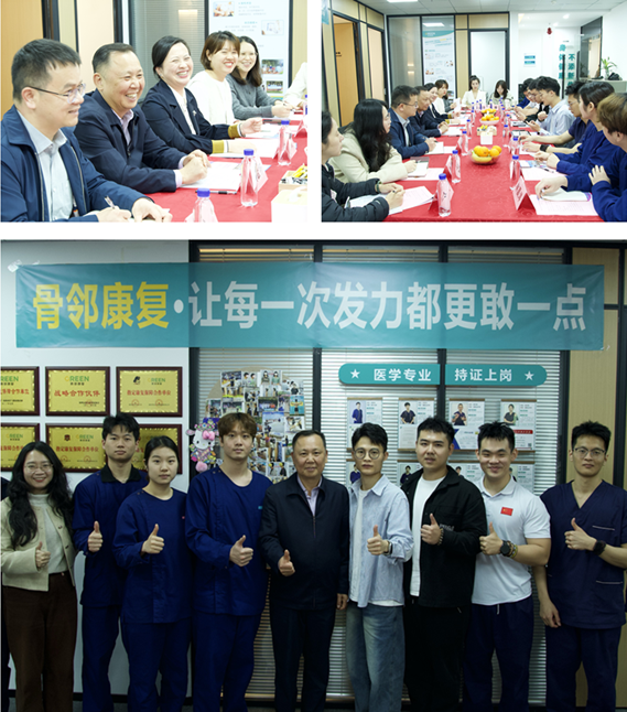 曾武祈带领团队考察2015届康复治疗技术专业校友沈鹏楠创办的骨邻运动康复中心,深入了解企业运营模式、行业趋势及人才需求。座谈会现场,9位毕业生校友齐聚一堂,浓浓的师生情谊与合作热情交织,让领导老师们倍感欣慰。座谈会上,双方就人才培养、实习实训、就业创业等领域深入交流,初步达成建立长期合作关系的共识。企业承诺为学生实习就业提供优先通道,构建互利共赢平台;学校表示将加强交流,推动产学研融合,培养更多高素质人才。